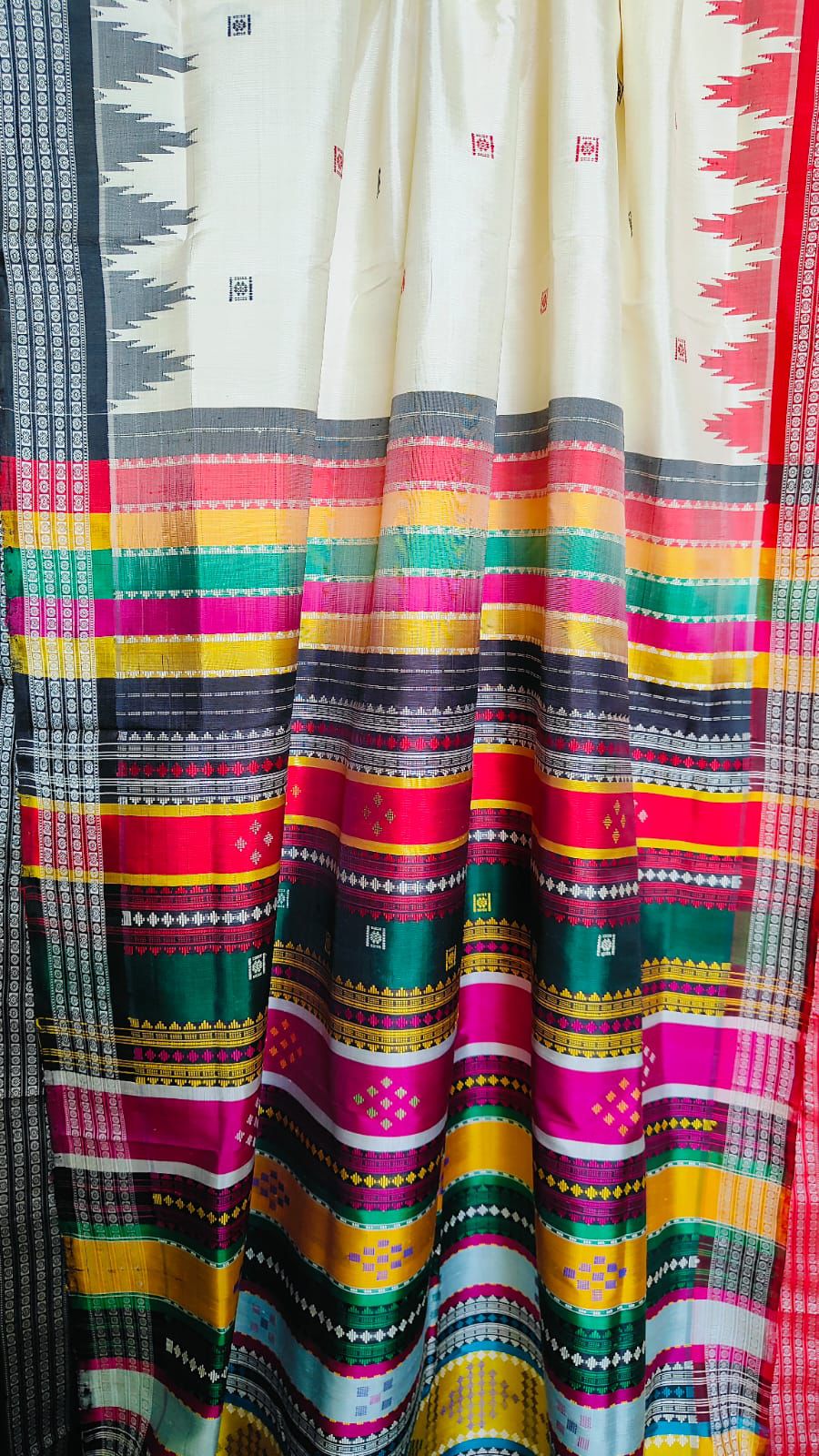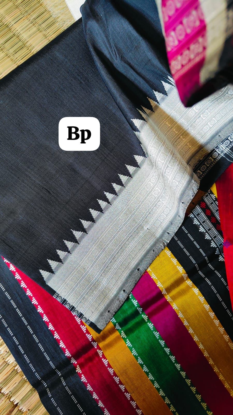 An exquisite 4-Fulia Rudraksha Border Berhampuri Double Pallu Pure Silk Saree, this masterpiece captures the soul of Odisha’s weaving legacy....