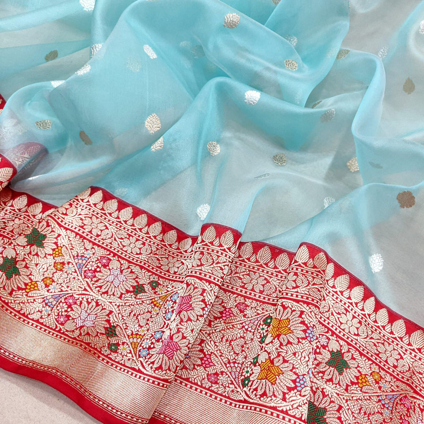 From the Banarasi Heritage Collection, the Noor Kora Banarasi Saree embodies the ethereal grace of pure handwoven Kora silk. Adorned...