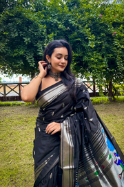 BLACK Pure Silk Paithani in silver zari