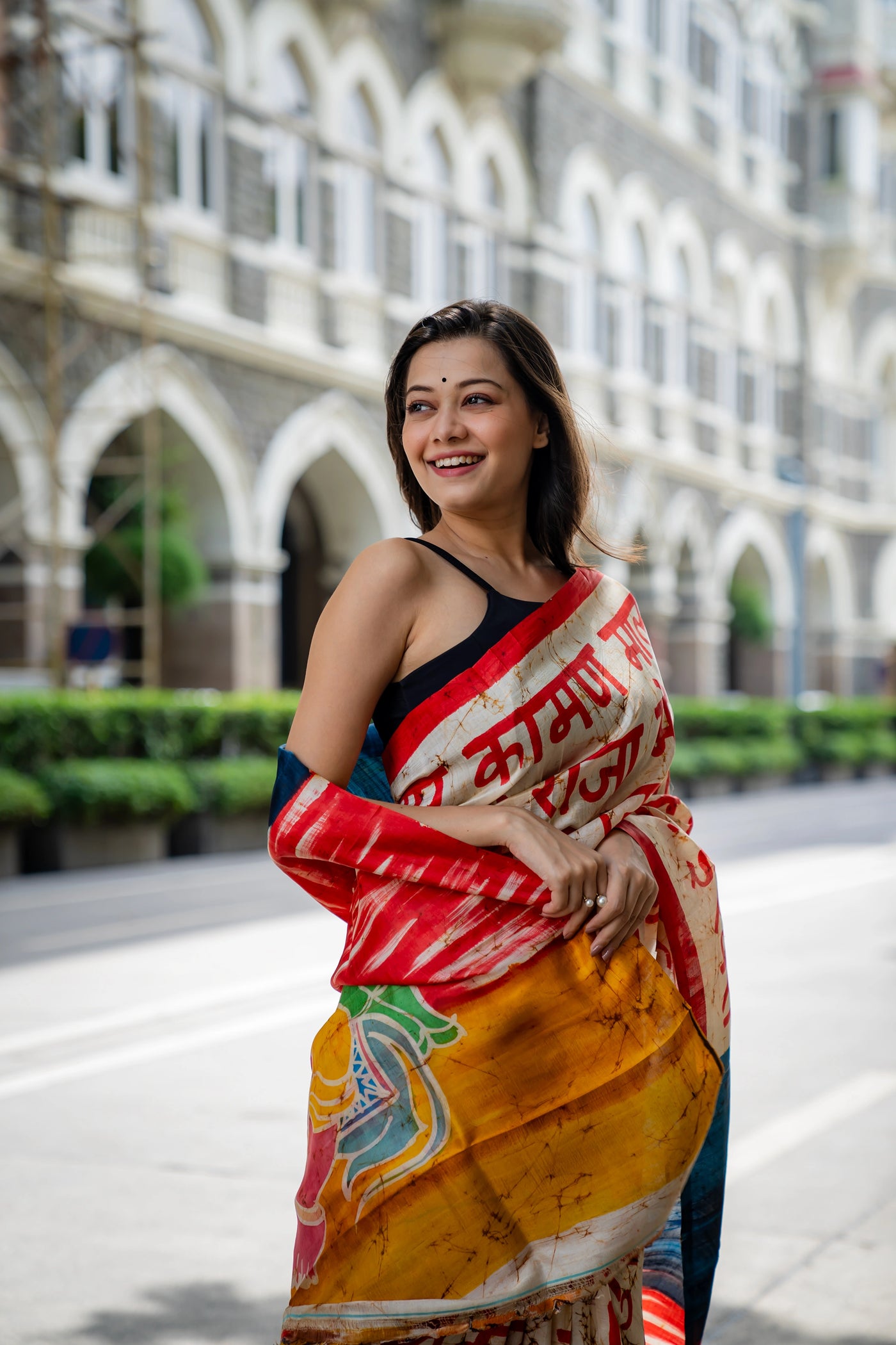 Hand-batik on silk sari