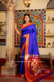 Handwoven Muniya Border Pure Silk Paithani with Meera Krishna Pallu
