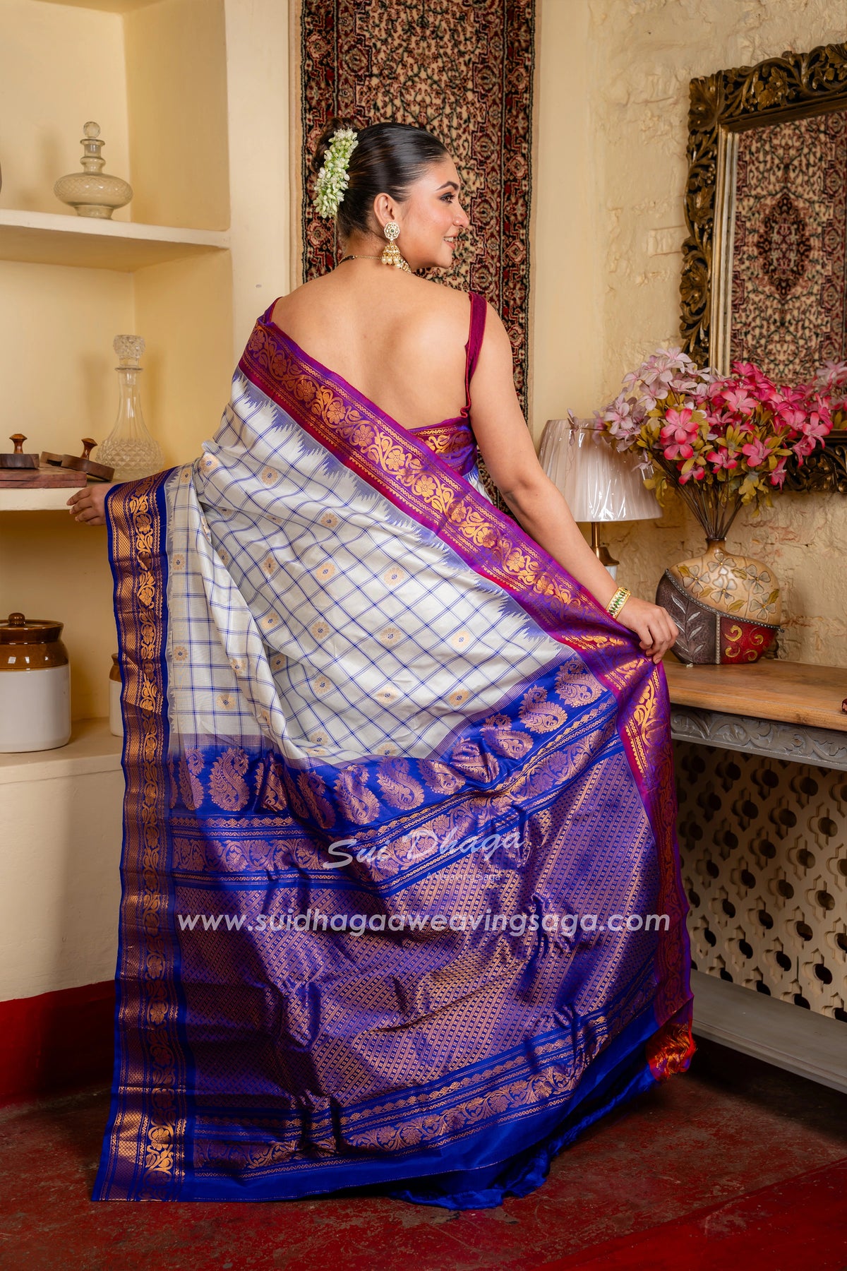 Handwoven Pure silk Checkered Gadwal in ganga jamuna Kuttu Border