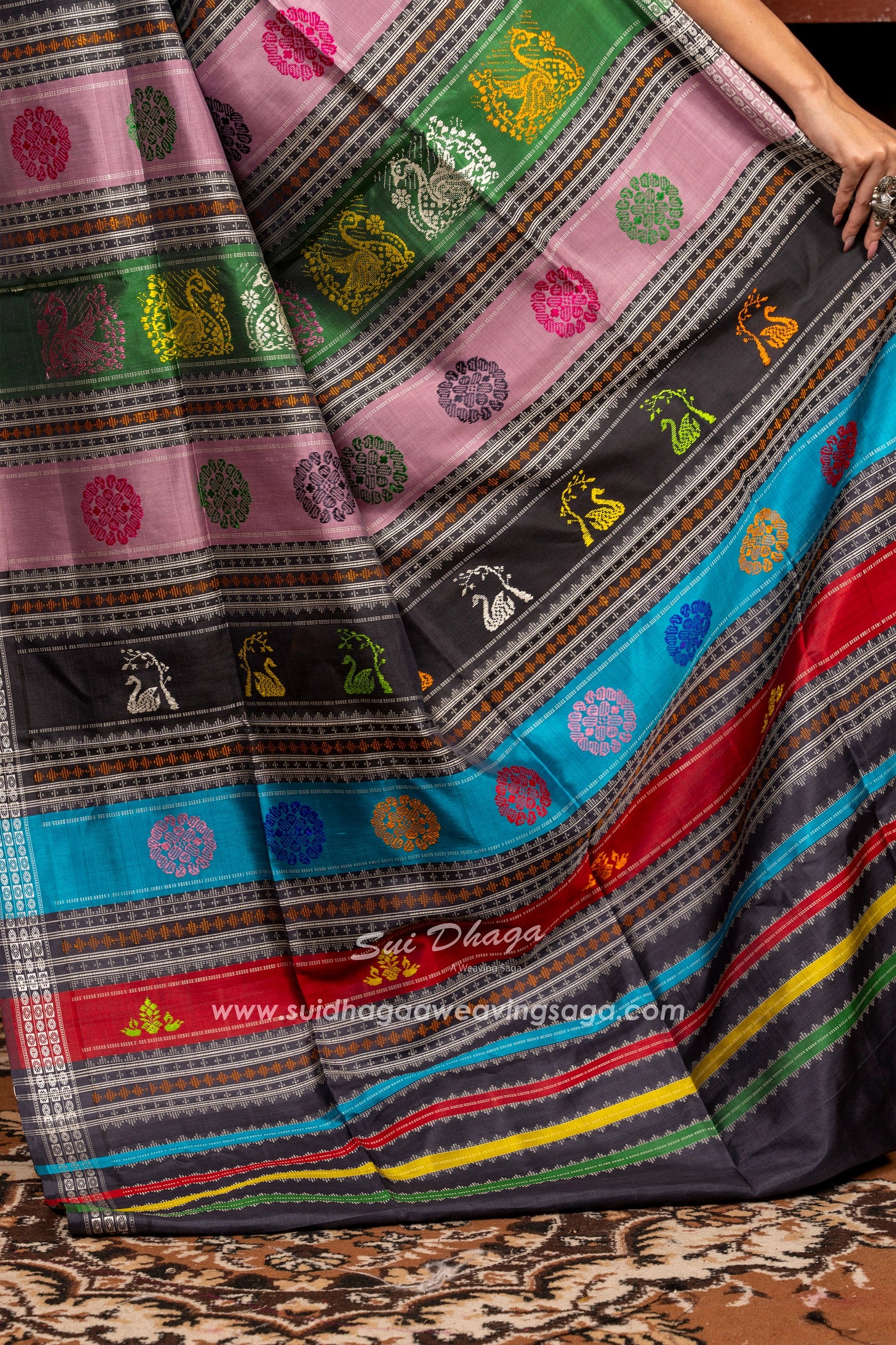 A mustard yellow Berhampuri Patta with traditional rudraksha border and distinctive palla which is indeginous to the traditional and original...