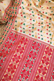 Pure Tussar Assam Silk Saree with Red Contrast Border